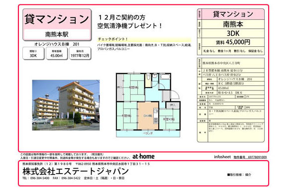 熊本市中央区⼋王寺町 オレンジハウスA棟 302